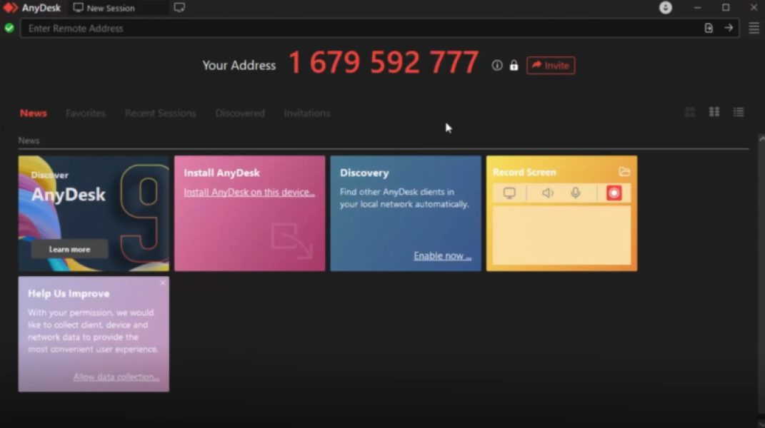 a. When AnyDesk opens, you’ll see a unique address displayed; this is the number you’ll need to provide when scheduling a support session on our website