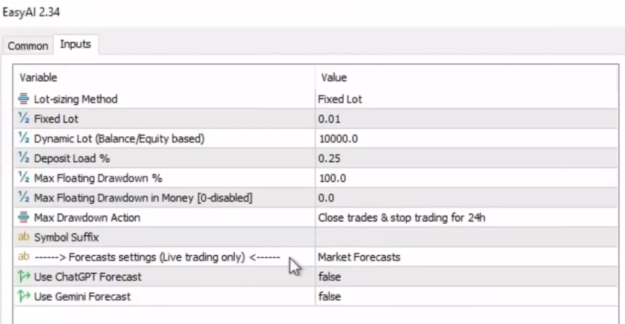 There’s nothing else you need to do. If the values are set to “true”, EasyAI will automatically use the forecasts to filter trades without requiring any manual intervention.