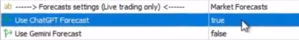 Once ChatGPT or Google Gemini forecasts are enabled in the EA parameters, this entire process is automated.