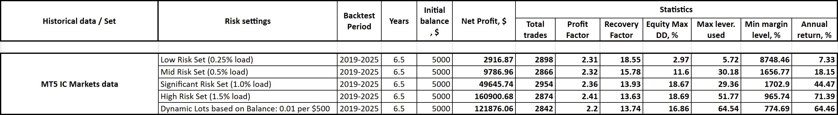 Below, you’ll find a table with EasyAI test results using high-quality tick data from various sources: